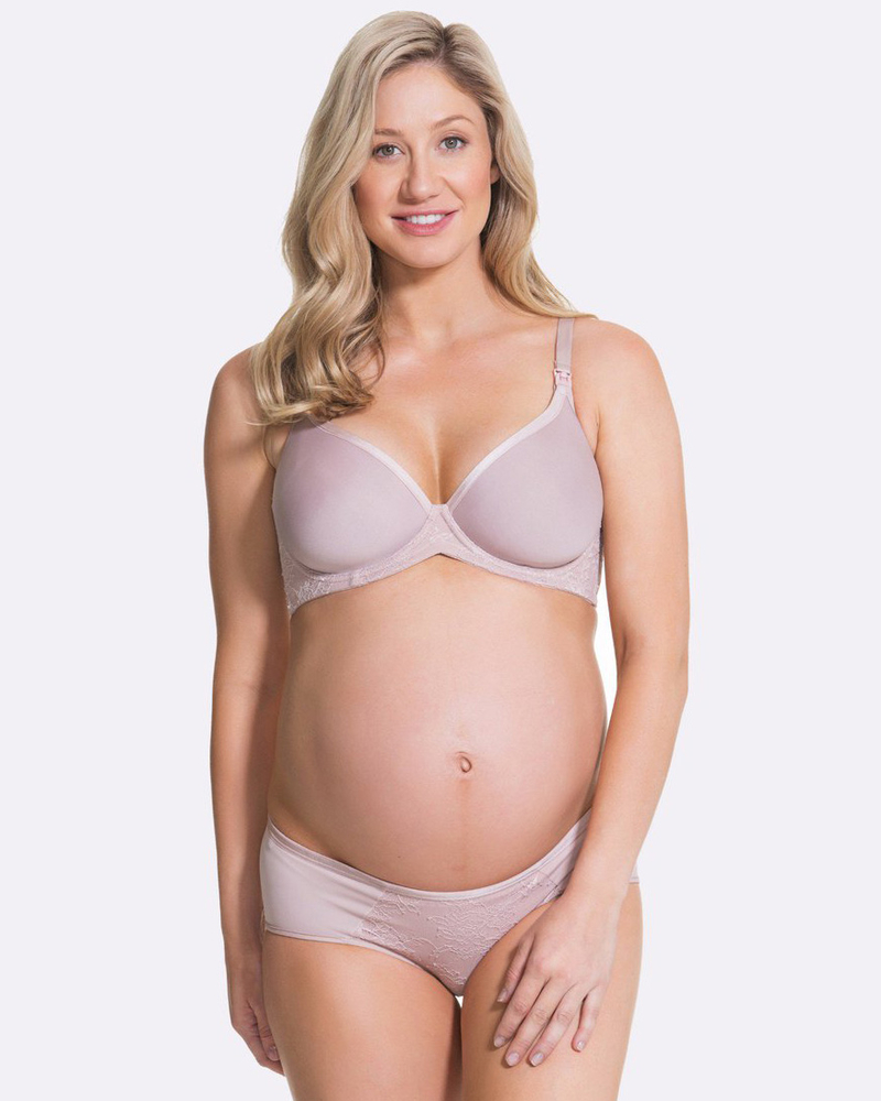 Красивый Cake Waffles 3D Underwire Spacer Bra от Cake Maternity Lingerie в нежно-розовом, пудровом оттенке - идеальный бюстгальтер под футболки и майки. Отстёгивающиеся клапана выполнены из уникальной, дышашей ткани спейсер - она отводит лишнюю влагу и эффективно испаряет её. Хлопковая А-образная конструкция хорошо поддерживает грудь без дискомфорта. Гладкие чашечки дополняются кружевной отделкой, добавляя немного изысканности и изящности. Гибкая косточка и A-образная конструция осторожно поднимают и обеспечивают дополнительную поддержку.