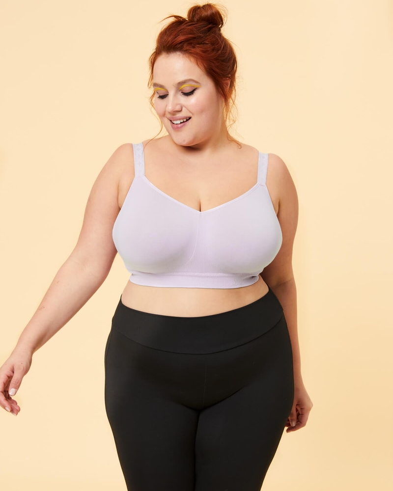 Бюстгальтер для дома и сна Cake Sugar Candy Basic Bralette G - K Cup (Lavender) в весенней расцветке - лаванда. Это идеальный бюстгальтер без косточек, удобный и не стесняющий движения. Вам без сомнения понравятся надежность и форма, которые предлагает Sugar Candy. Трикотажные вставки в рубчик имитируют форму и поддержку бюстгальтера на косточках. Модель изготовлена из влагоотводящей ткани, которая сохранит вашу кожу сухой и подарит вам уверенность и беззаботность. Эластичность ткани позволяет ей подстроиться под изменения вашего тела. Шелковисто-мягкий, бесшовный трикотажный дизайн, внутренние вставки предназначенные для подъема, придания формы и поддержки груди. Удобные, широкие бретели, регулируемые по всей длине. Есть возможность застягуть их крест на крест, поменяв местами. Широкий пояс на 3-х уровневой застяжке имеет 6 рядов крючков, которые подойдут под любые изменения вашей фигуры.