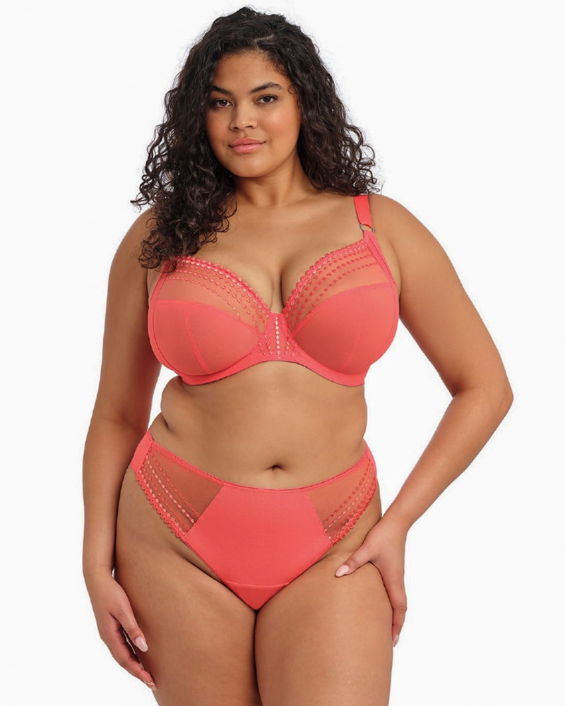 Готовы впустить солнце в свою коллекцию белья? Легендарный бюстгальтер Matilda от Elomi теперь представлен в ярком оттенке Sunset для тех, кто жаждет красок и настроения. Чажка планж создаёт соблазнительное глубокое декольте без пуш-апа, а фирменные трехсекционные чашки с боковой поддержкой обеспечивают лифтинг-эффект, центрирование груди и четкое разделение.