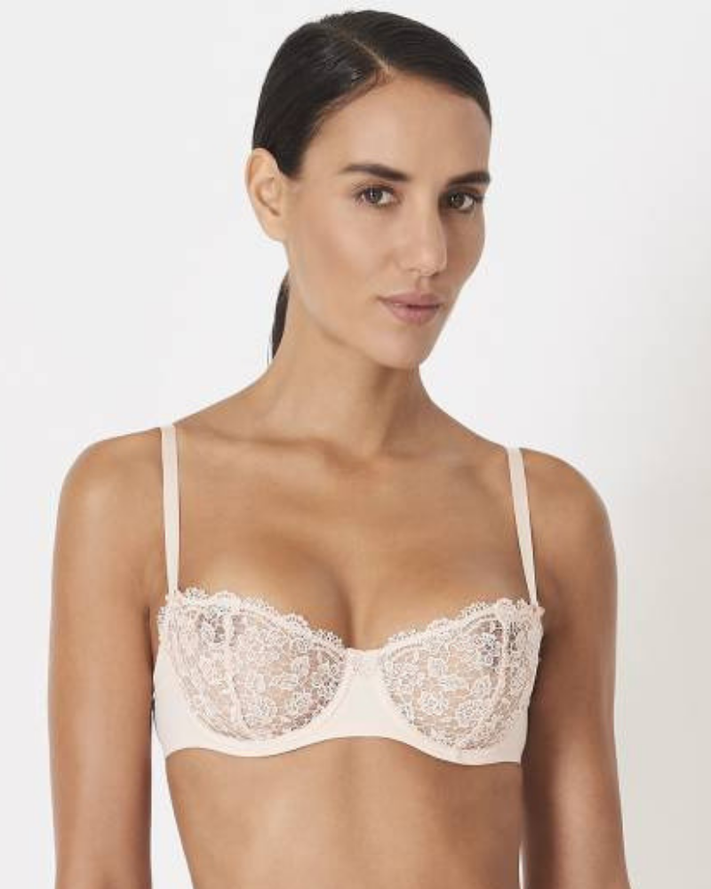 Бюстгальтер Secret De Charme Bra от марки Aubade - это комфортное бельё кипельно-белого цвета. Блестящая, золотая нить вплетённая в кружево смотрится очень женственно и волшебно. Бра в стиле балконет хорошо собирает грудь к центру и подчёркивает эффектную зону декольте. Лямки регулируются по длине, застёжка имеет два крючка.