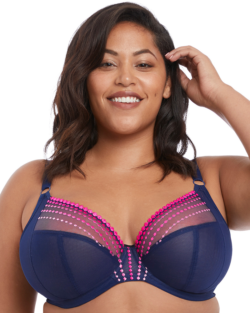 Elomi Matilda - одна из самых лучших моделей для большой и очень большой груди. Бюстгальтер с мягкой чашкой в глубоком синем цвете и декорирован розовой вышивкой по верху. Максимальная степень поддержки этого бюстгальтера ставит его в один ряд со спортивными моделями. Он способен превратить размер Н в легкий и невесомый бюст. Широкие и очень плотные бретели регулируются по всей длине, имеется крючок для дополнительной поддержки. Широкая спинка из плотной сетчатой ткани прекрасно держит грудь и скрывает не эстетичные "валики" на спине.