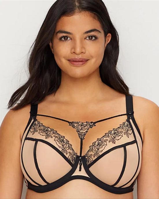 Бюстгальтер Tori от бренда Elomi - соблазнительная новинка ванильного оттенка с контрастными чёрными лентами и кружевом, созданная на основе кроя легендарной "Матильды". Необычное украшение на груди отстёгивается и бра приобретает более повседневный облик. Трехсекционная чашка плюс боковой подкрой хорошо собирает и поднимает бюст.