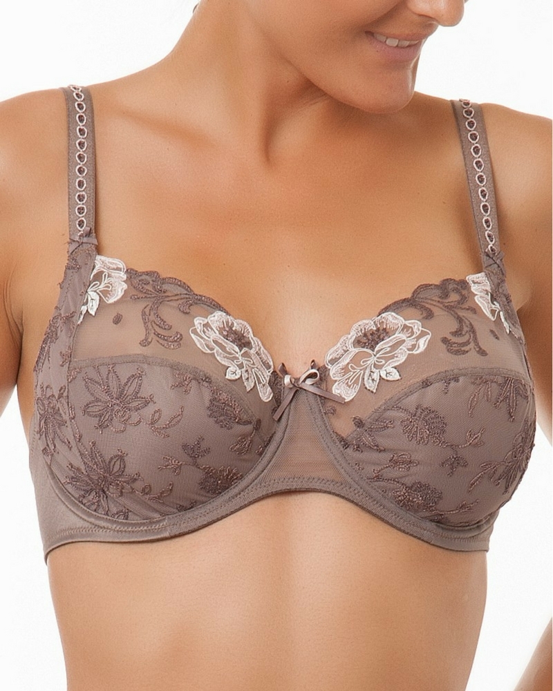 Визуальная легкость этой полупрозрачной модели бюстгальтера-балконет с мягкими чашками на каркасах с безупречной посадкой, делает ее необычайно соблазнительной. Она отличается гармоничными цветовыми сочетаниями и использованием различных типов вышивки. Рельефная вышивка крученой нитью в нижней части чашки напоминает ручную работу и смотрится очень эффектно. Тщательно отобранный тюль с вышивкой производится согласно стандартам качества Empreinte и обеспечивает превосходную посадку.