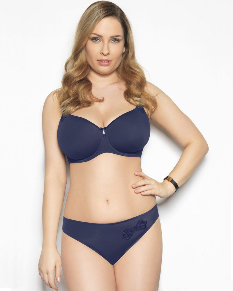 Бюстгальтер-спейсер на косточках, выполнен из легкой, дышащей ткани тёмно-синего цвета. Спейсер – это инновационный 3D-материал, который используется для создания бюстгальтера с формованными чашечками и позволяет воздуху проходить через них. Широкие, регулируемые по высоте бретели и застежка на крючки сзади. Дополнен боковыми каркасными вставками и украшен чарующей вышивкой.