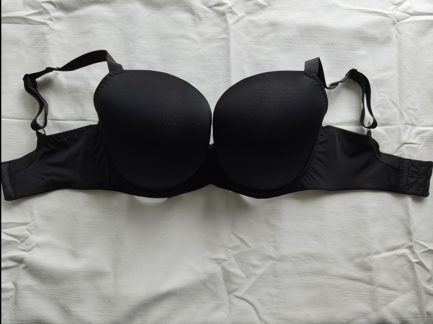 Базовая модель из поролона в черном цвете. Округляет и поднимает грудь, собирая к центру. Подходит для близко посаженной груди и груди потерявшей форму.