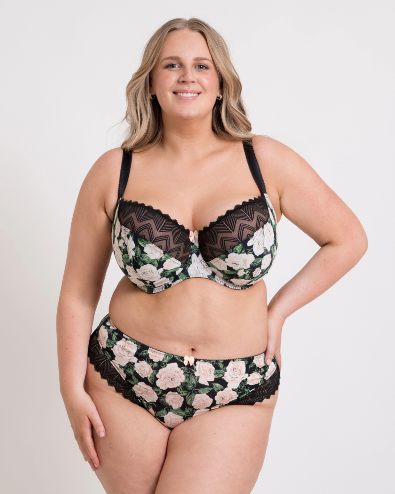 Культовый бюстгальтер-балконет возвращается в новом нежном цветочном исполнении. Модель сочетает поддерживающие чашки из ткани Simplex и эластичное геометрическое кружево, создавая идеальный силуэт, который приподнимает, формирует и подчеркивает грудь.