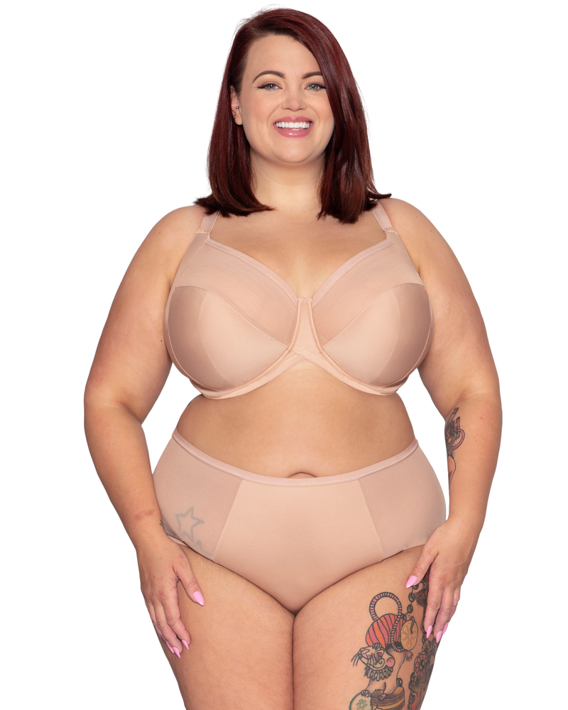 Фантастически удобный бюстгальтер full-cup в мягкой чашке от Curvy Kate с технологией Cushion Comfort. Бюстгальтер-балконет выполнен из 4х частей, которые формируют мягкую, округлую форму груди. Грудь полностью закрыта, а эластичная верхняя часть бра с силиконовой вставкой по краю позволяет скрыть не большую ассиметрию груди.
