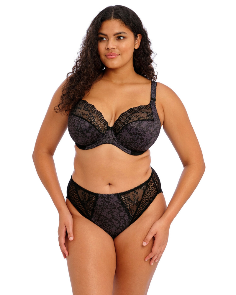 Бюстгальтер Lucie Plunge от бренда Elomi с цветочным принтом в черном цвете.