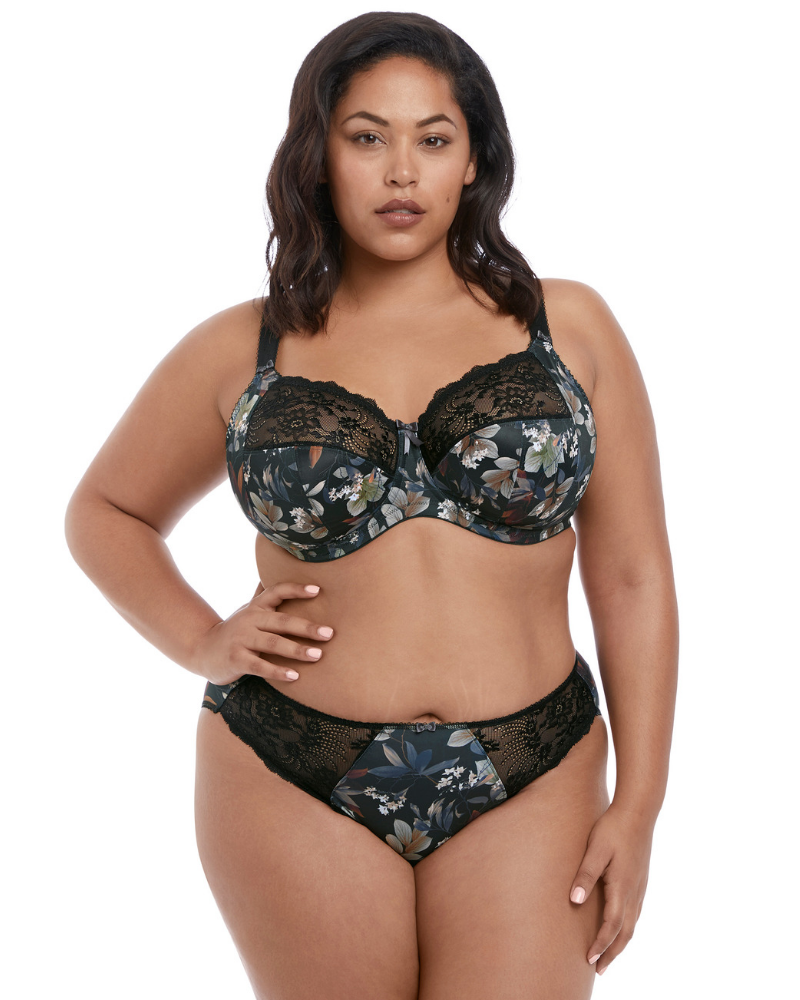 Бюстгальтер английской марки Elomi с цветочным принтом из осенней коллекции Midnight Garden обеспечивает максимальную поддержку большой груди. Выполнен из нежнейшего сатина - плотного и неэластичного материала с характерным блеском. Черное эластичное кружево по верху чашки дополнено резинкой для более надежной фиксации бюста. Уникальный крой помогает скорректировать форму - визуально уменьшает на размер и отлично скрывает асимметрию. Бретели широкие и регулируются по всей длине. Плотный пояс на 3 крючка. Elomi Morgan - самая популярная модель для большой груди!
