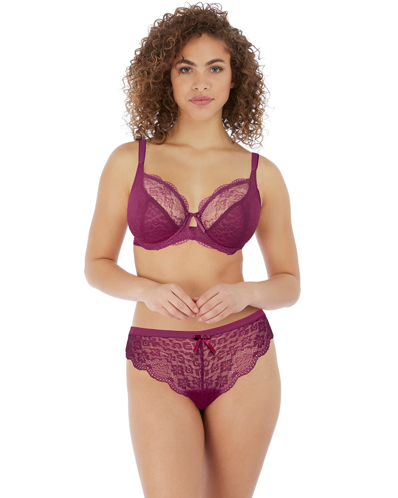 Любимый всеми бюстгальтер Freya с чашечками планж Fancies теперь доступен в великолепном оттенке Berry с эффектным вырезом в центре, нежным кружевом и бантом в горошек, завершающим образ. Модель на косточках, с глубокой, кружевной чашечкой.
