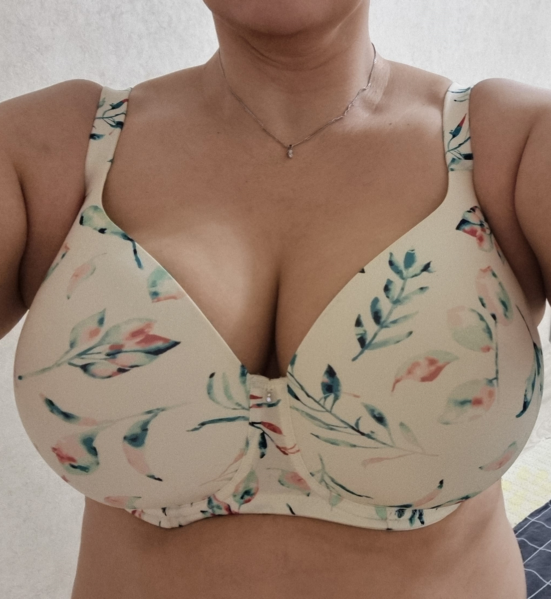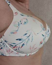 Базовая модель в цвете айвори с летними цветами. Подойдет под тонкую и обтягивающую одежду. Округляет грудь.