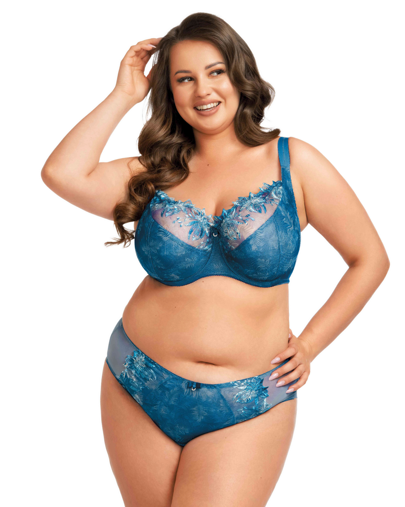 Мягкий бюстгальтер от польского бренда Nessa в лазурном цвете. Модель очень хорошо приподнимает и округляет грудь, сохраняя ее естественную форму. Идеально подходит для средней и большой груди. Изготовлен из набивной сетки и плоской прессованной вышивки. Чашка имеет один горизонтальный и один вертикальный шов. Бретели регулируются по всей длине. Пояс из высокопрочной эластичной сетки, без боковых каркасов, застегивается на 3 крючка в 3 положениях.