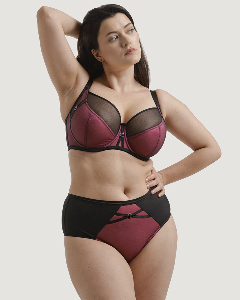 Новинка в осенней коллекции марки Nessa бюстгальтер Liri Soft Bra (Fuchsia/Black). Бюстгальтер формы балконет выполнен на базе модели Moly Soft Bra с т-образным диагональным швом. Внешняя ткань чашки бюстгальтера черная полиамидная сетка с плетением "пчелиные соты"-это идеальная ткань для бюстгальтера, т.к. она обладает высокой износоустойчивостью ,выдерживает очень большие нагрузки и главное, 100% воздухопроницаемость.По бокам чашки декорированы перекрещивающимися тонкими черными резинками с "пряжкой" рамкой .Внутренняя только нижняя половина чашки продублирована тонкой , но с плотным плетением полиамидным полотном цвета фуксии, не только для хорошей стабилизации ткани и формы чашки ,но и для того, чтобы визуально скрыть ареолу соска. Верхний край чашки с двух сторон обработан эластичной резинкой. Внутренний край чашки(зона подмышки) и часть пояса дополнены широкой плоской окантовочной резинкой со свободным краем. В конструкции чашки это помогает хорошо подтянуть грудь с боку, а в конструкции пояса обеспечивает комфортную посадку без перерезания за счёт свободного края. Пояс выполнен из одинарного полотна powernet средней коррекции без боковых каркасов. Двойная резинка пояса, которая проходит по всему нижнему краю бюстгальтера обеспечивает сверхсильную поддержку тяжёлой груди. Бретели широкие, гладкие с внешней стороны с сатинированной выработкой, с внутренней стороны мягкая бархатистая поверхность. Фурнитура в серебристом исполнении из металлического сплава устойчивого к агрессивному окислению. Застёжка в бюстгальтере также подобрана с учётом размерной сетки (для более уверенной поддержки и комфорта). Во всех размерах застёжка 3х- уровневая из мягкой микрофибры. Внутренняя часть застёжки и края, которые прилегают к телу обработаны таким способом, чтобы во время носки ощущение застёжки на спине отсутствовало.