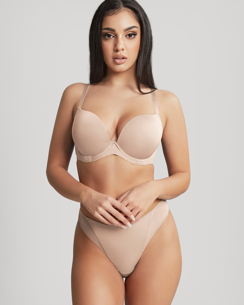 Базовая модель от английского бренда Panache Faith в бежевом цвете. Модель планж, прекрасно подойдет для тех, кто любит открытую зону декольте.