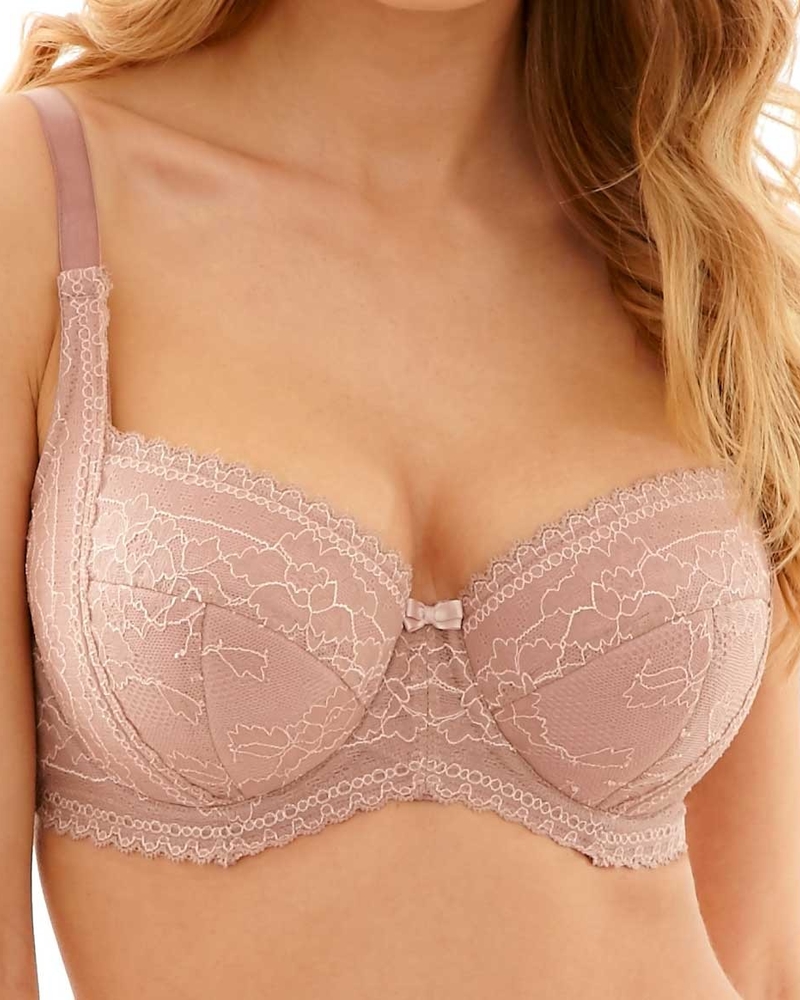 Этот бюстгальтер Petra от Panache выполнен из плотной ткани нежного кофейного оттенка, он обеспечивает прекрасную боковую поддержку объемной и тяжелой груди. Бретели помогают отрегулировать комфортную посадку. Эластичный плотный пояс. Пикантная деталь - милый бантик между чашечками.