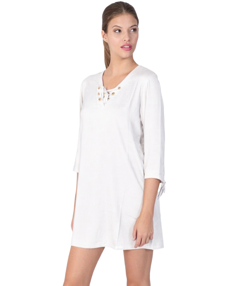 Платье-туника свободного кроя в белом цвете - отличный выбор для девушек на пляже. Туника выполнена из дышащего материала и не сковывает движений.