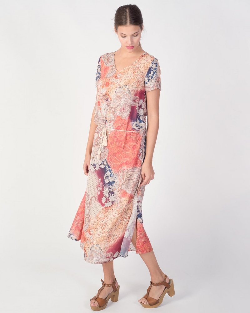Длинное платье-туника в эффектной, универсальной рассцветке. Лёгкое платье отлично подойдёт для прогулок по набережной и пляжу.