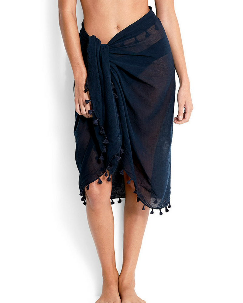 Саронг в тёмно синем цвете подойдёт для дополнения любого модного пляжного образа.