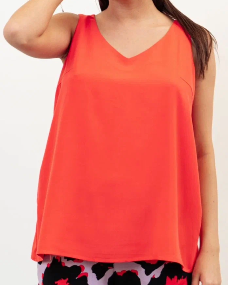 Топ на толстых бретелях из 100% вискозы свободного прилегания с V-образным вырезом горловины.