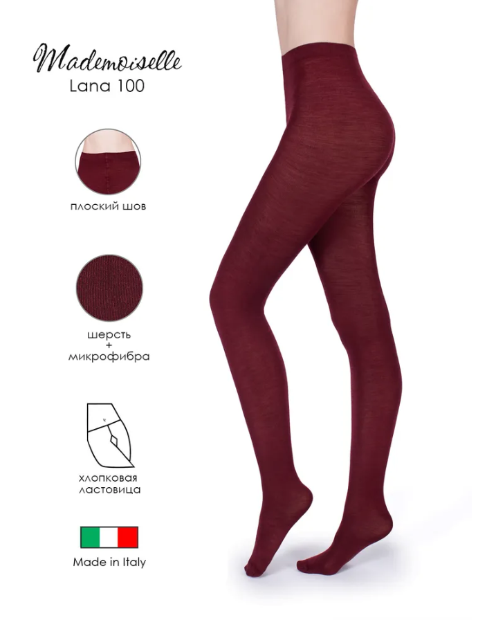 Мягкие и теплые, матовые, плотные колготки из шерсти. Однородные по всей длине, плоские швы, хлопковая ластовица.