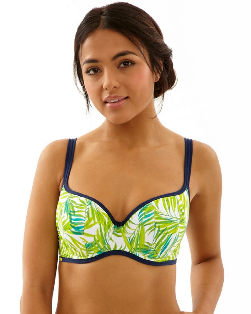 Купальник Avril в новом стильной расцветке с яркими зелеными пальмовыми листьями. Плотная чашечка в стиле «балконет» с усиленной боковой поддержкой подходит для всех типов груди. Форма купальника достаточно закрытая и по удобству может сравниться со спортивными моделями. В нем вы можете заниматься плаваньем и пляжными видами спорта без малейшего дискомфорта.