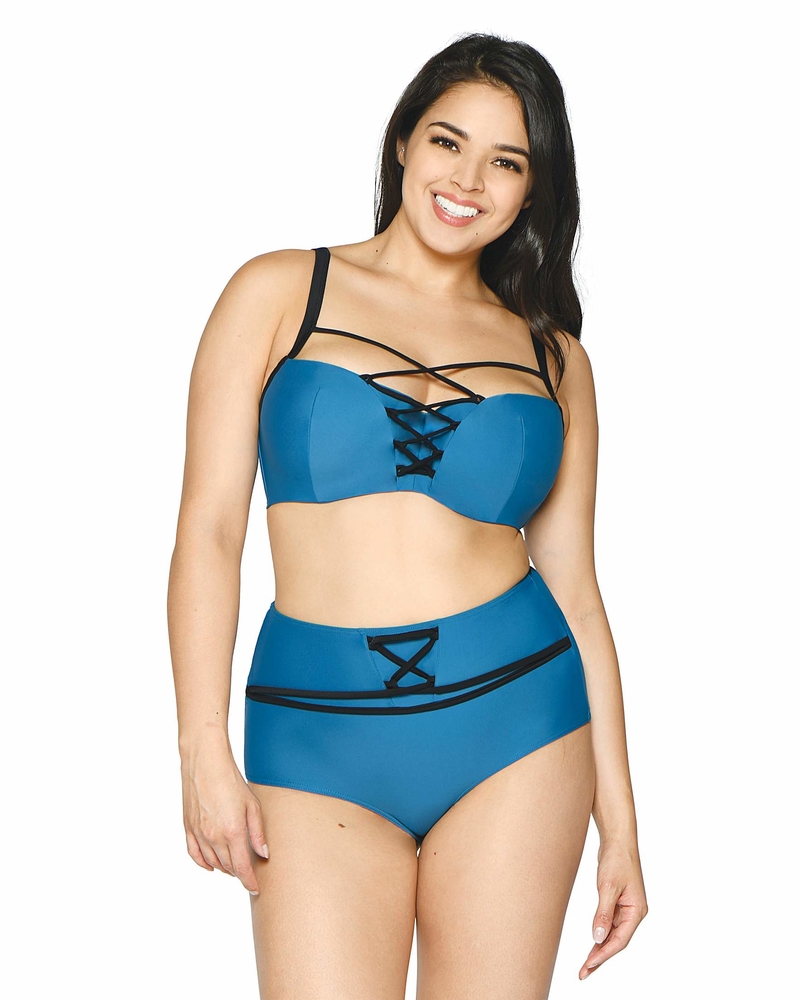 Яркий купальник Rock the Pool от Curvy Kate в смелом дизайне с чёрной шнуровкой будет выглядеть сногсшибательно как на пляже, так и в бассейне. Глубокий оттенок синего уже несколько сезонов не выходит из моды и успел стать некоторой классикой в мире пляжной моды.