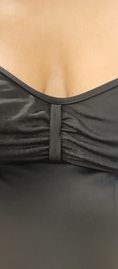 Разрезные бретели, регулируются не по всей длине. На бретелях присутствует деталь с золотой отделкой, которая не нагревается на солнце.