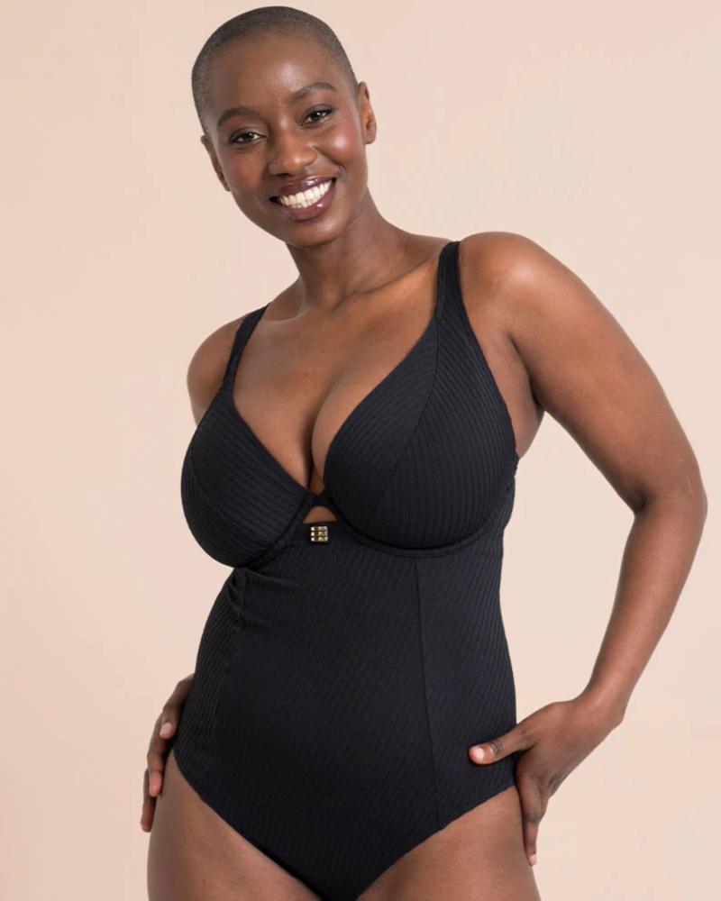 Представляем вам слитный купальник Jet Set Multiwy Plunge Swimsuit от английской марки Curvy Kate в чёрном цвете. Классический стиль подойдёт для любой фигуры и будет идеальным выбором для любого вида пляжного отдыха или плавания в бассейне.