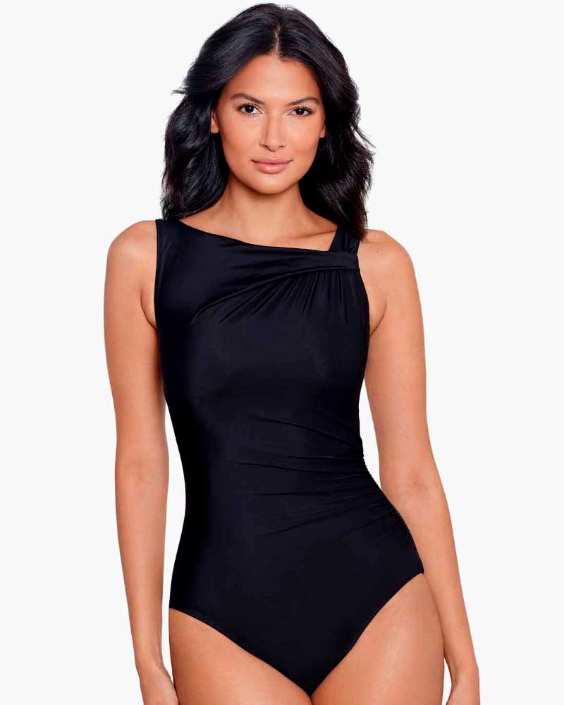 Новинка слитного купальника в черном цвете от популярного бренда Miraclesuit, который является ведущий производитель моделирующих купальников, которые корректируют фигуру с удивительным эффектом ("Выгляди на 10 кг. легче за 10 сек"). Это происходит за счет кроя – очень удачные продуманные конструкции для разных типов фигур, и за счет качественной ткани Miratex, которая не только обладает потрясающим моделирующим эффектом, но и очень долговечна и устойчива к хлорке. - Чашка мягкая, без поролона, внутри имеются косточки.
