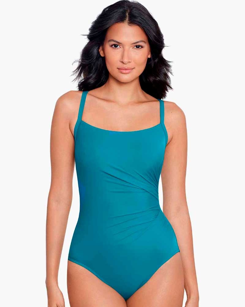 Новинка слитного купальника в цвете голубого океана от популярного бренда Miraclesuit, который является ведущий производитель моделирующих купальников, которые корректируют фигуру с удивительным эффектом ("Выгляди на 10 кг. легче за 10 сек"). Это происходит за счет кроя – очень удачные продуманные конструкции для разных типов фигур, и за счет качественной ткани Miratex, которая не только обладает потрясающим моделирующим эффектом, но и очень долговечна и устойчива к хлорке. - Чашка мягкая, без поролона, внутри имеются косточки.