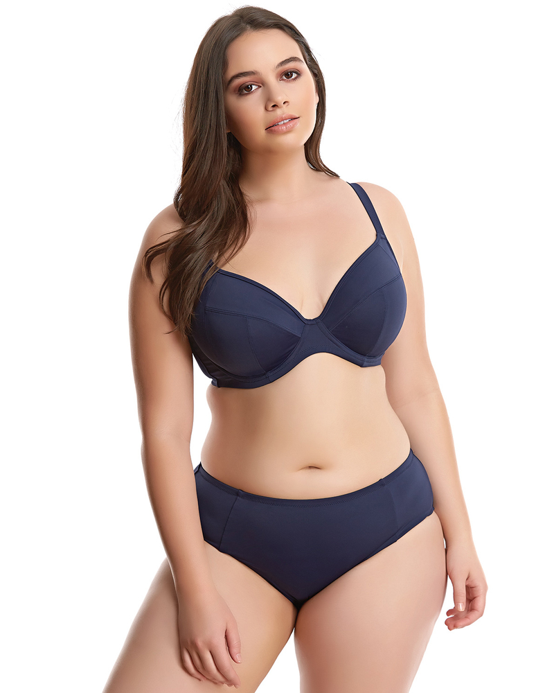 Стильный раздельный купальник темно-синего цвета Essentials от Elomi никогда не выйдет из моды. Бра выполнен из плотного качественного материала в стиле «планж» и формирует красивую линию декольте. Бретели регулируются по длине. Плотный эластичный пояс с удобной застежкой. Универсальность данной модели в том, что имея верх и низ купальника в базовом темном цвете, вы можете легко обновлять свой пляжный образ с помощью нового бра или плавок других цветов. В комплект к бюстгальтеру можно подобрать однотонные плавки Elomi Essentials Brief (Navy).