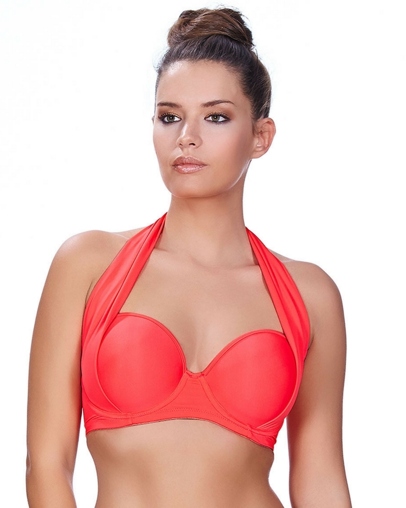 Freya Deco - линейка известная своей безупречной поддержкой и шикарной формой. Купальник можно носить тремя различными способами: с завязками через шею, как классическое бандо и с завязкой-галстуком. Чашечки идеально округлой формы создают красивую линию декольте, а широкий плотный пояс отлично поддерживает грудь. Модель выполнена в красивом ярко-коралловом цвете. Без внимания на пляже вы точно не останетесь.