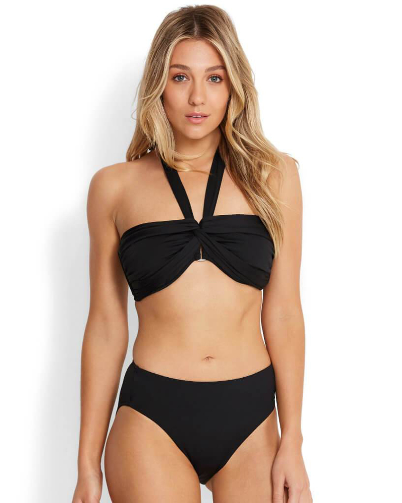 Изящный купальник-бандо в классическом чёрном цвете. Чистые, прямые линии отлично подчеркнут изысканый пляжный стиль. Бандо без косточек, на спине застёжка в тон купальнику.