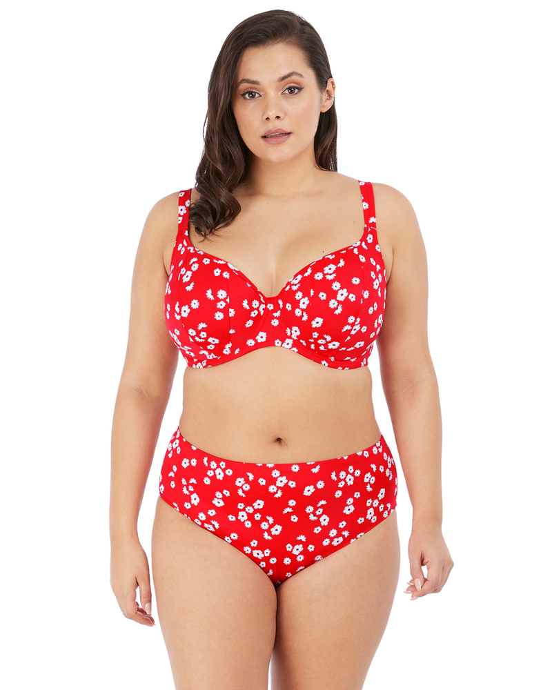 Подарите себе солное настроение с топом от бикини Plain Sailing Sweetheart с ярко-красным цветочным принтом, украшенным красивыми ромашками на гладкой чашке, которая схожа с нижним бельем Elomi. Верх бикини имеет привлекательный вырез в форме сердца, а чашечки с секциями создают приподнятую форму.