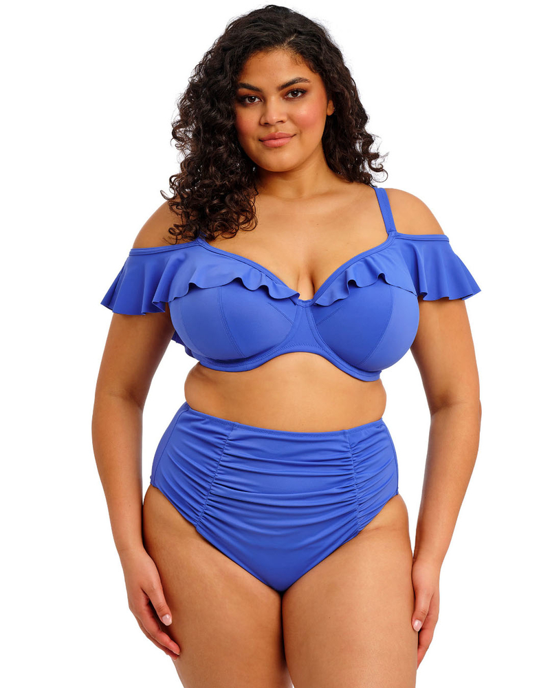 Идеальный спутник для вашего следующего отпуска! Этот топ с глубоким вырезом в сияющем лазурном оттенке сочетает в себе кокетливый образ бикини и фирменную посадку бюстгальтера Elomi. Модель с рюшами, которые можно носить на плечах или сбросить, создавая романтичный образ.