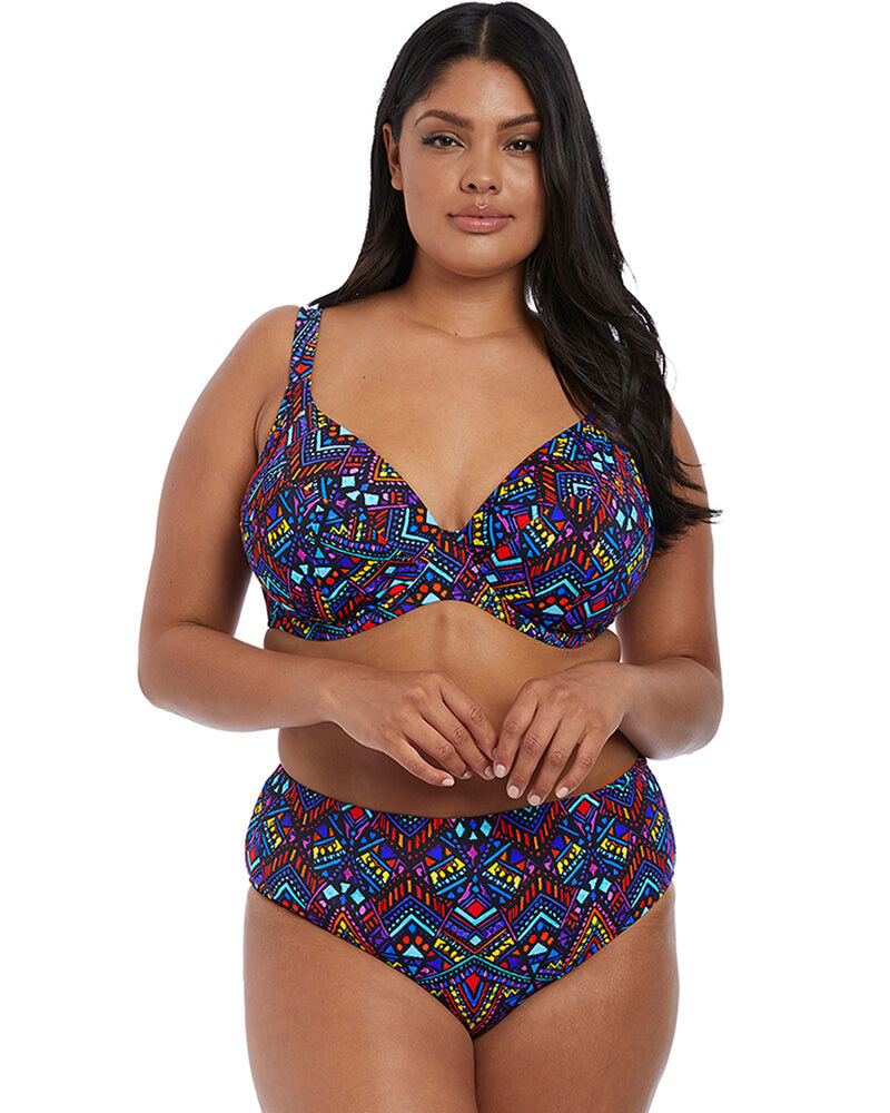 Яркий и летний купальник Aztec от Elomi выполнен из легкого легкого материала с прочной подкладкой. Он идеально подходит для большой груди и обеспечивает отличную поддержку за счёт скрытой чашки на косточках. Яркий геометрический принт, имеет эффектное V образное декольте.