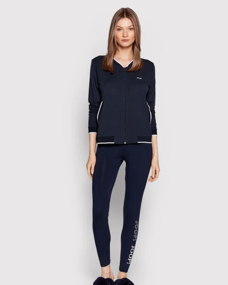Комплект из жакета и брюк из линейки Sporty Elegance от JOOP! изготовлены из очень мягкой и эластичной ткани. Модель прямого кроя с молнией и контрастной окантовкой. Манжеты из рубчатого трикотажа. Брюки изготовлены из очень мягкой эластичной ткани, которая удобна в носке и обеспечивает большую свободу движений, дополненные эластичным поясом на завязках.