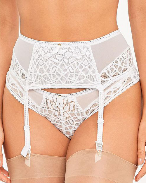 Широкий пояс для чулок белого цвета с регулировкой пояса. Ремешки с клипсой-держателем для чулок регулируется по длине.