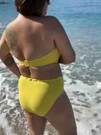 Супер плавки из комплекта! Не спадают, не врезаются, не чувствуются на коже. Рюши даже в сухом виде ложатся вниз, но меня это не смущает. Они прелестные и очень оживляют образ всего купальника