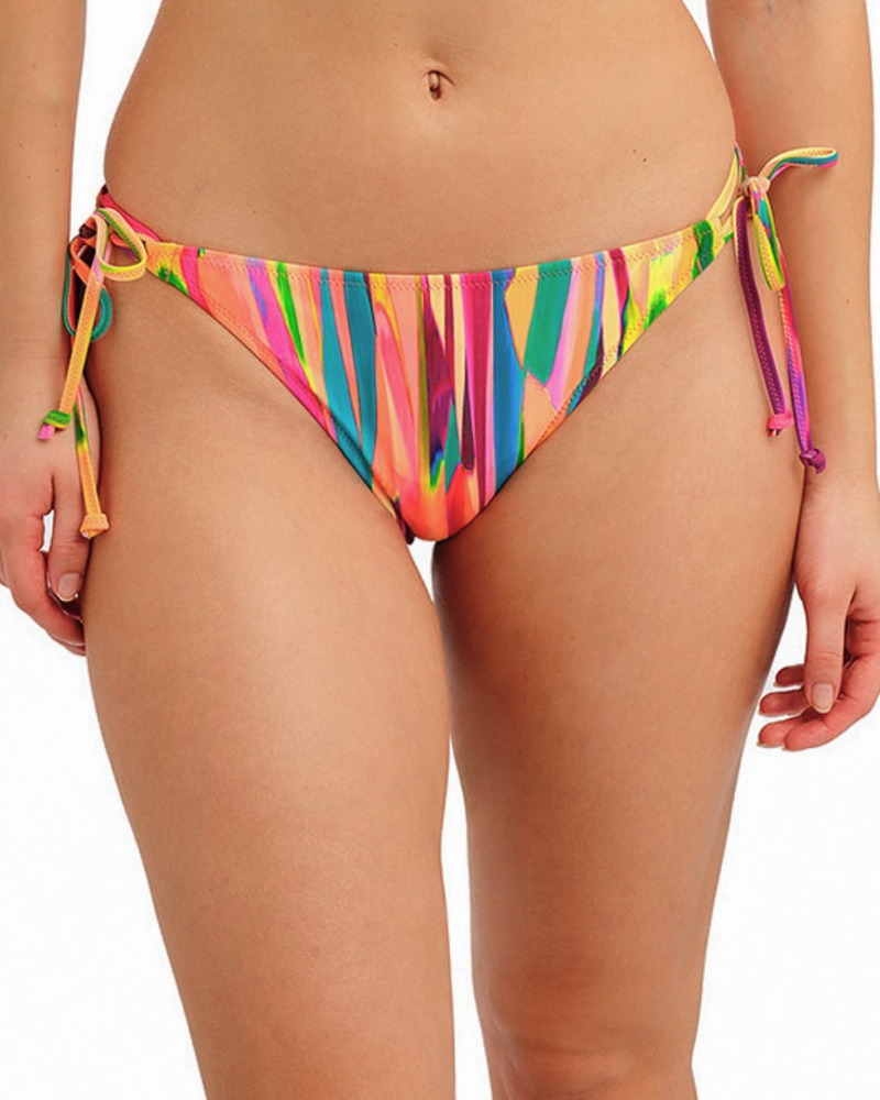 Встречайте яркие летние деньки с трусиками-бикини San Antonio с завязками по бокам в смелой расцветке Fiesta! Регулируемые боковые завязки позволяют идеально подогнать посадку по фигуре, а средняя линия талии обеспечивает комфортное прилегание и уверенность. Модель сочетает в себе удобство и игривый стиль.