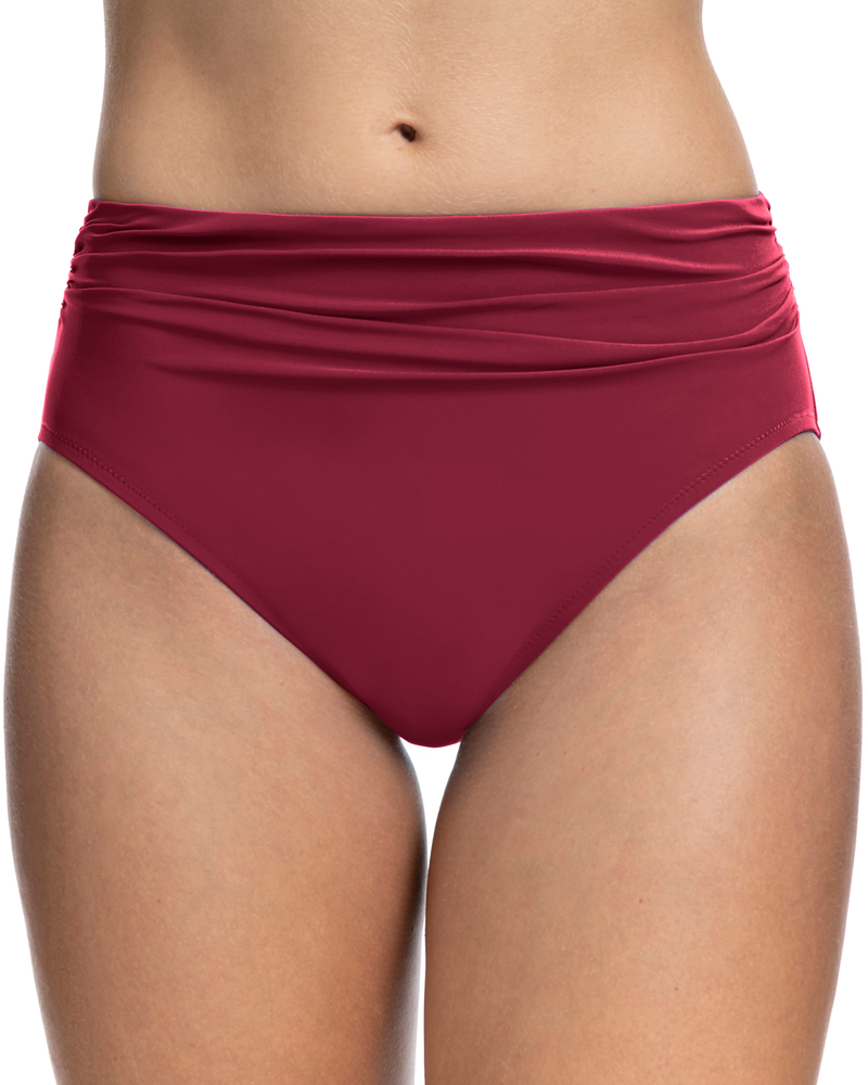 Высокие плавки винного оттенка с лёгкой драпировкой в области живота.