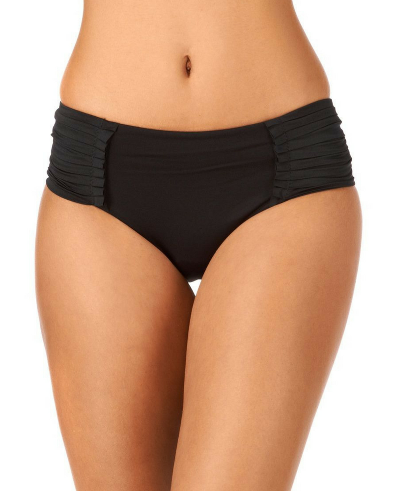 Чёрные плавки-шорты с эффектным декором на бёдрах. Модель с низкой линией бедра.