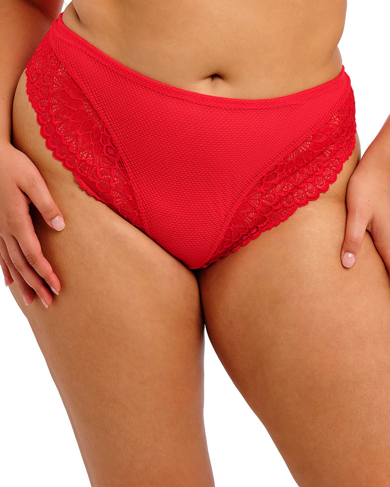 Позвольте своей смелой стороне засиять с трусиками Elomi Tiernie в страстном красном оттенке! Модель выполнена из нежного эластичного кружева, которое изящно ложится вдоль линии бедер, создавая эффектный контраст с насыщенным цветом. Обработанная эластичная резинка в области ластовицы обеспечивает дополнительный комфорт, делая эти трусики идеальным выбором.