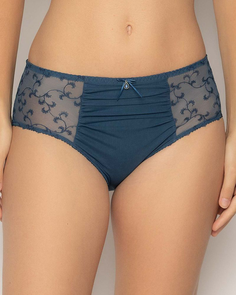 Трусы Carmen с завышенной талией придают элегантность и современность образу. Передняя часть трусов Carmen изготовлена из непрозрачной плиссированной ткани, удачно стирающей мелкие изъяны. Трикотаж на задней части трусов Carmen чрезвычайно мягкий и обеспечивает максимальный комфорт. Вышитые кокетки по бокам придают шортам Carmen прозрачность и легкость.