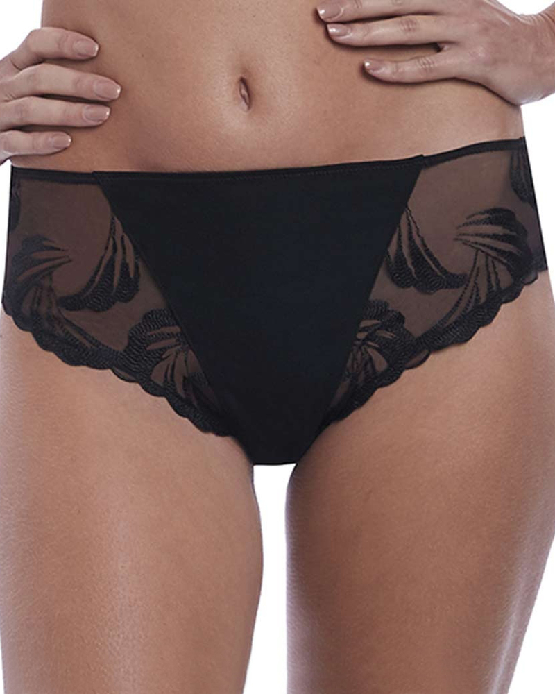 Классические трусики посадки миди в чёрном цвете. Плоский край не выделяется под одеждой. Ластовица продублирована хлопковой вставкой.
