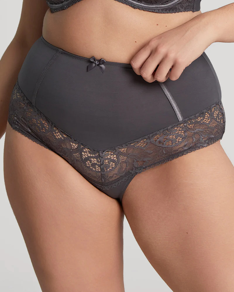 Комплектные трусики станут прекрасным дополнением к гламурному бюстгальтеру. Высокая посадка модели с двумя вертикальными швами спереди прекрасно корректирует область живота. Трусики выполнены из мягкой микрофибры, декорированы гипюром. Кружево плоское и будет незаметно под одеждой. Сзади модель также имеет два шва для максимальной поддержки. Трусики украшены кокетливым бантиком спереди и атласной лентой на передних швах. Швы мягкие с внутренней стороны и не будут доставлять дискомфорт. Ластовица выполнена из хлопка, что обеспечит максимальный комфорт в носке.
