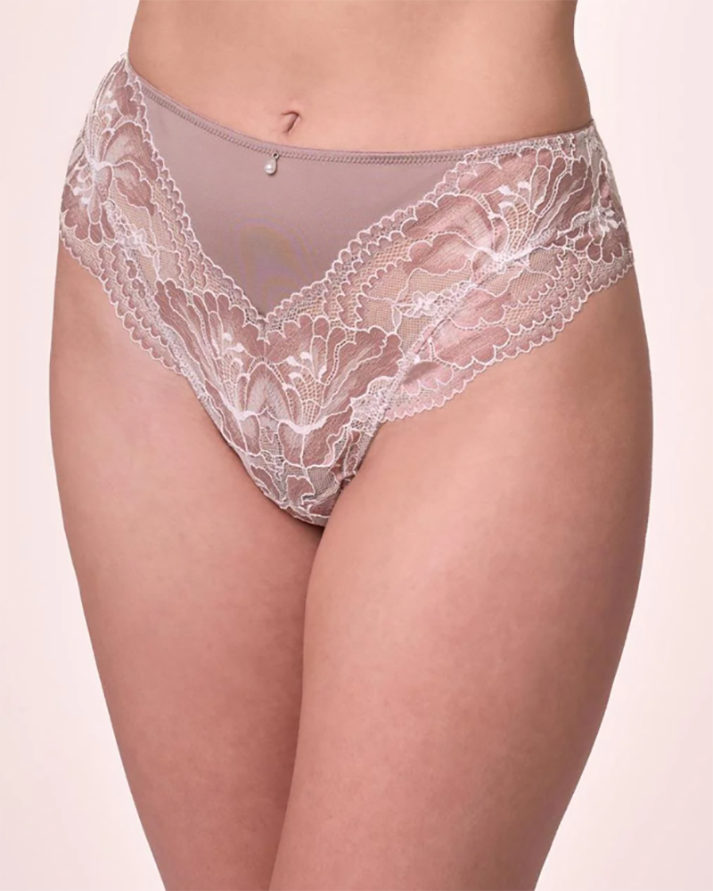 Стринги, которые выглядят стильно и дорого. Гладкое двухцветное кружево с фигурным краем и лаконичный минималистичный силуэт создают образ сдержанной, но уверенной сексуальности. Идеально дополняют бюстгальтер из той же коллекции.