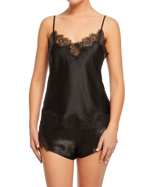 Майка классического, чёрного цвета с красивым переливом от марки Dita Von Teese. Нежный шёлк подчёркивает изящность силуэта, а изящное кружево дополняет образу женственности. Майка в бельевом стиле отлично подойдёт для наряда на выход.